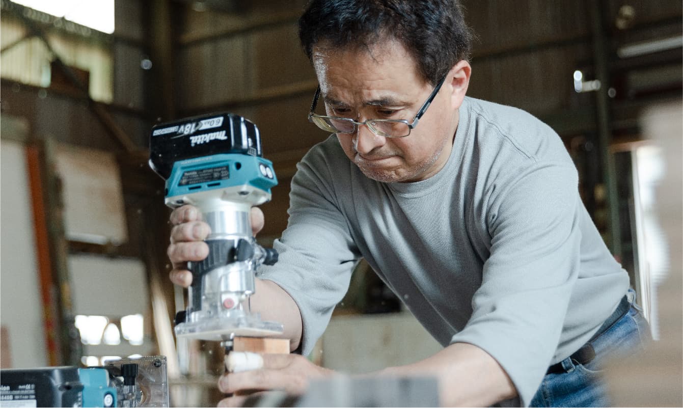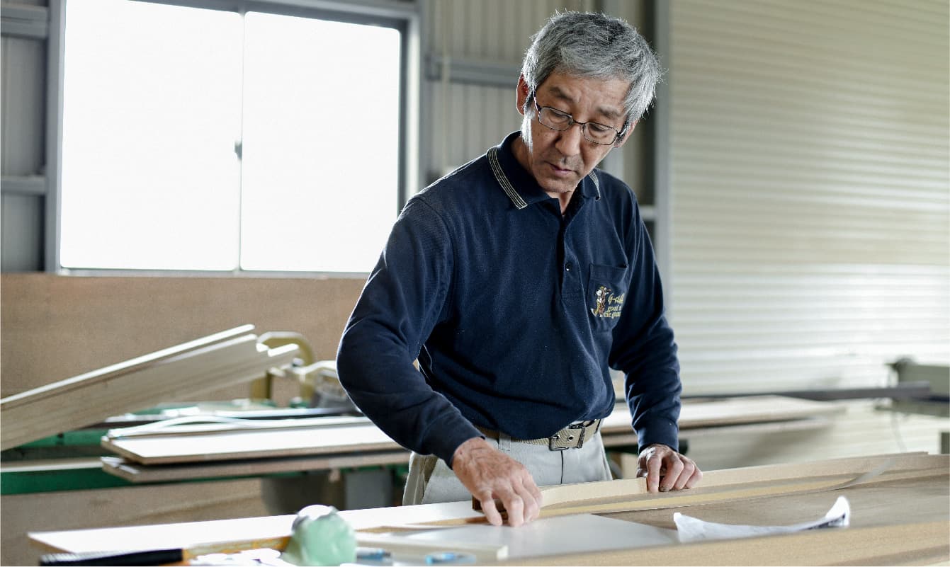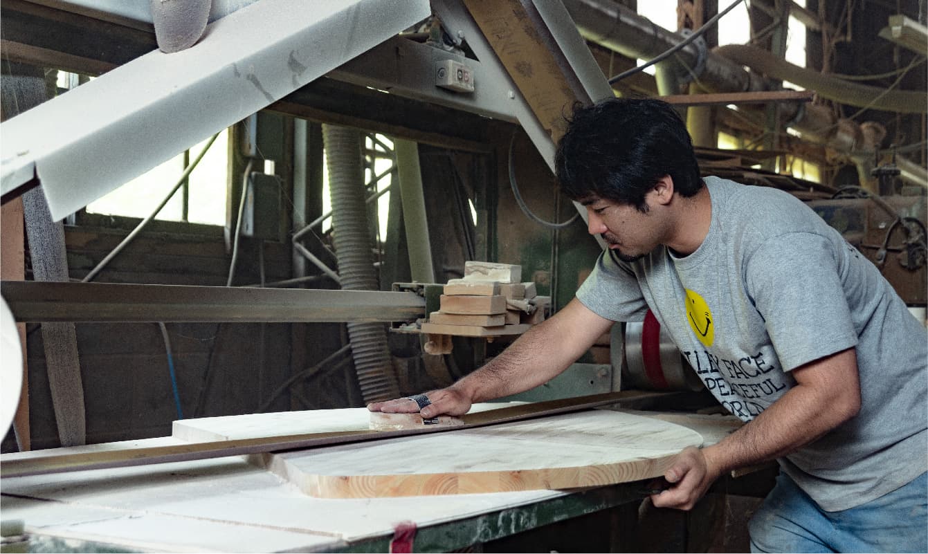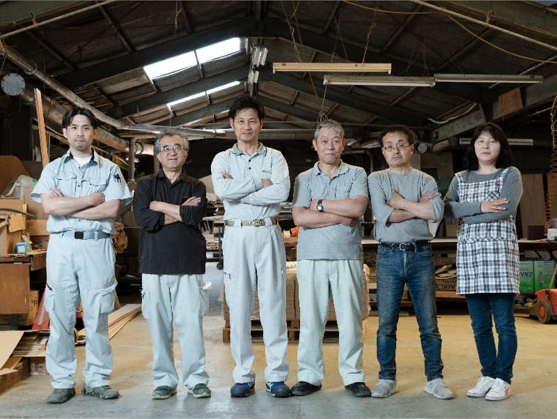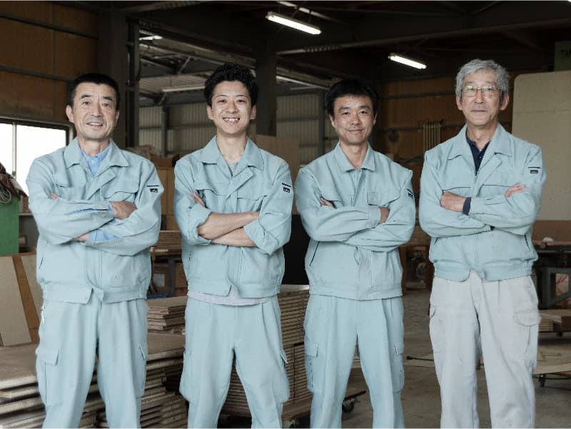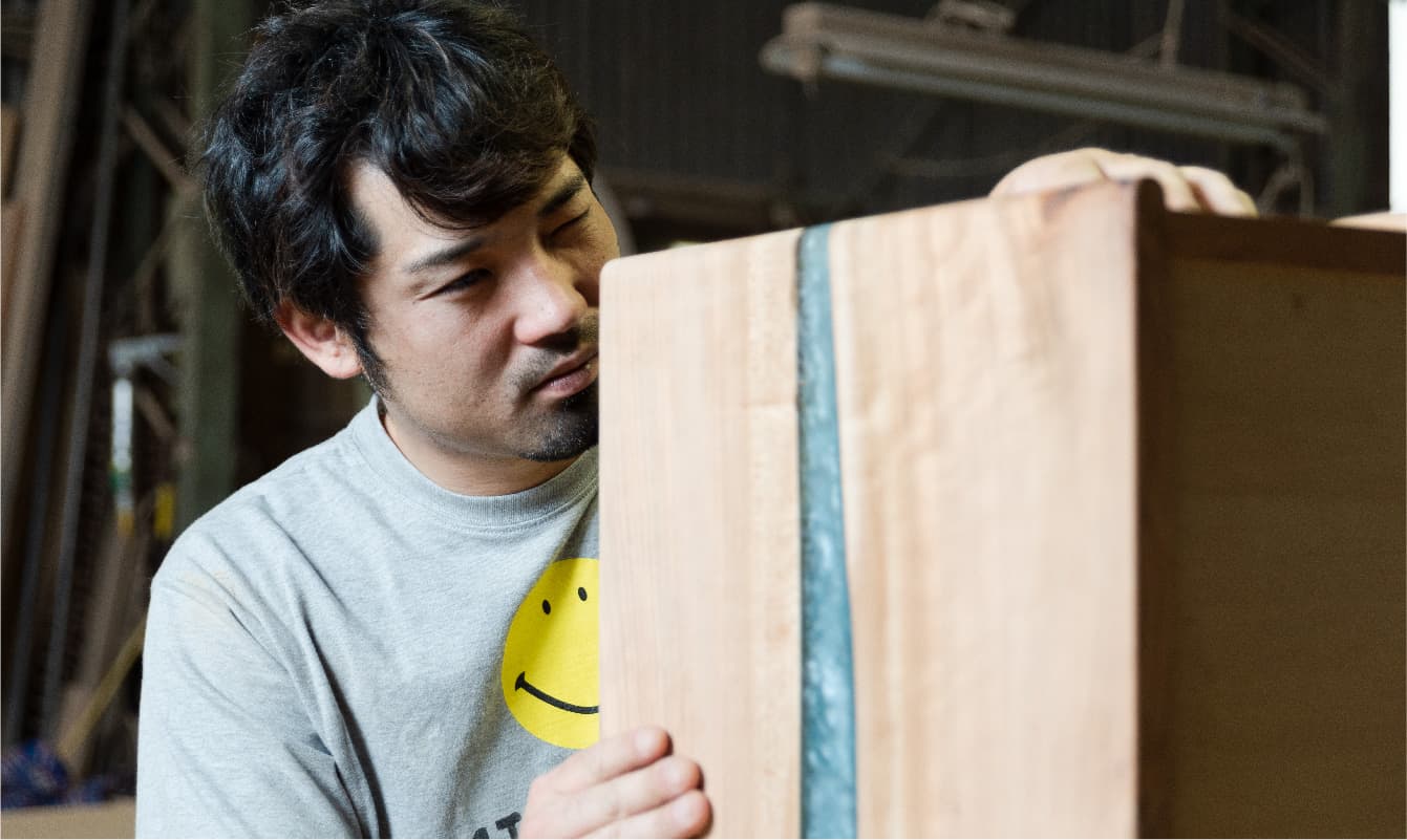 親から子へ、木工職人の誇りと技術を受け継ぐ、明和木工。親子3人の阿吽の呼吸で、スピーディ且つ丁寧な家具が生まれていく。短納期対応も得意とする。