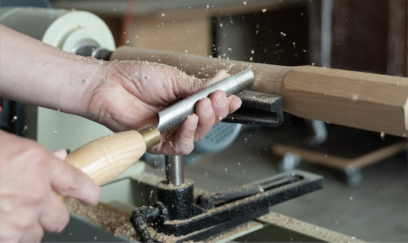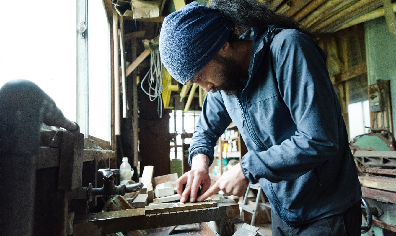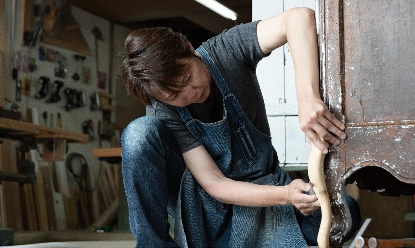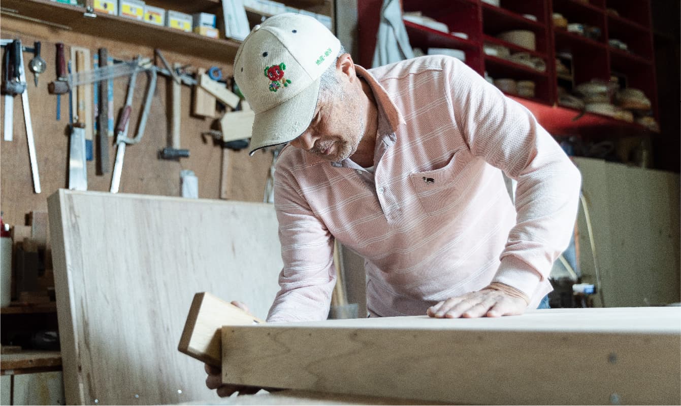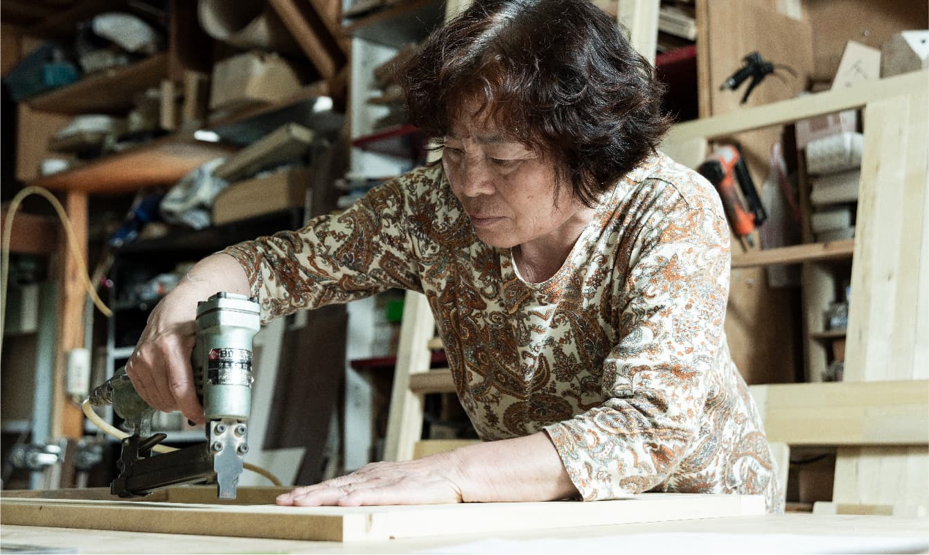 親から子へ、木工職人の誇りと技術を受け継ぐ、明和木工。親子3人の阿吽の呼吸で、スピーディ且つ丁寧な家具が生まれていく。短納期対応も得意とする。