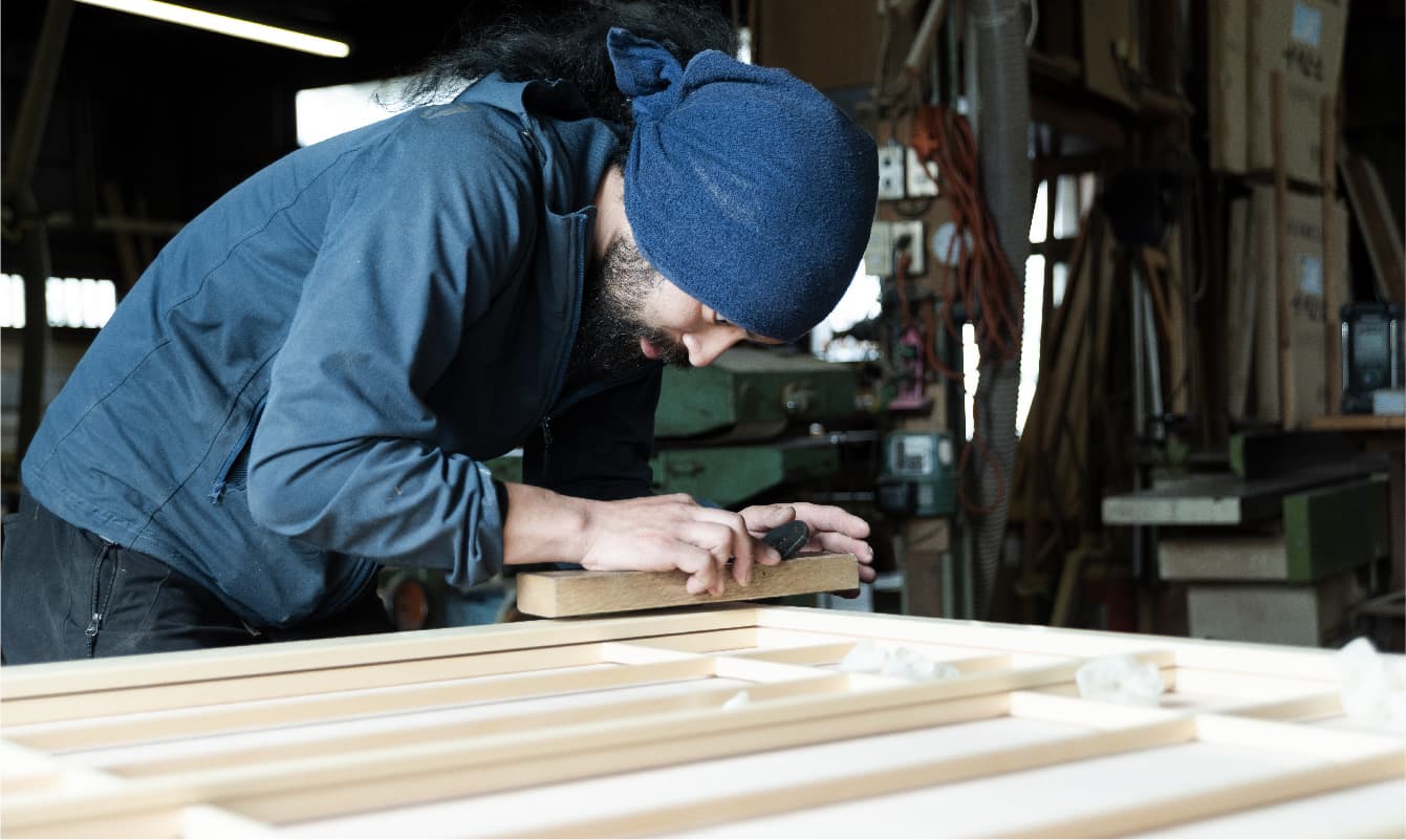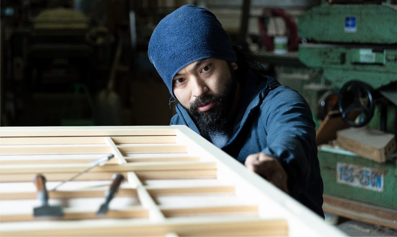 仏閣から店舗家具まで、あらゆる建具の製作を得意とする松嶋木工所。こだわりが詰まった道具を用いて、高い技術力で作り上げられる建具は、細部に至るまで正確で丁寧、そして美しい。