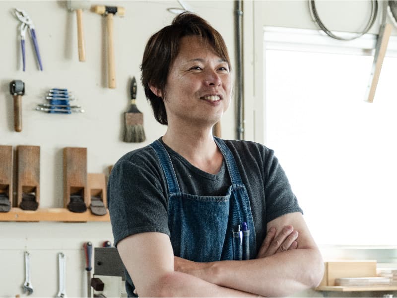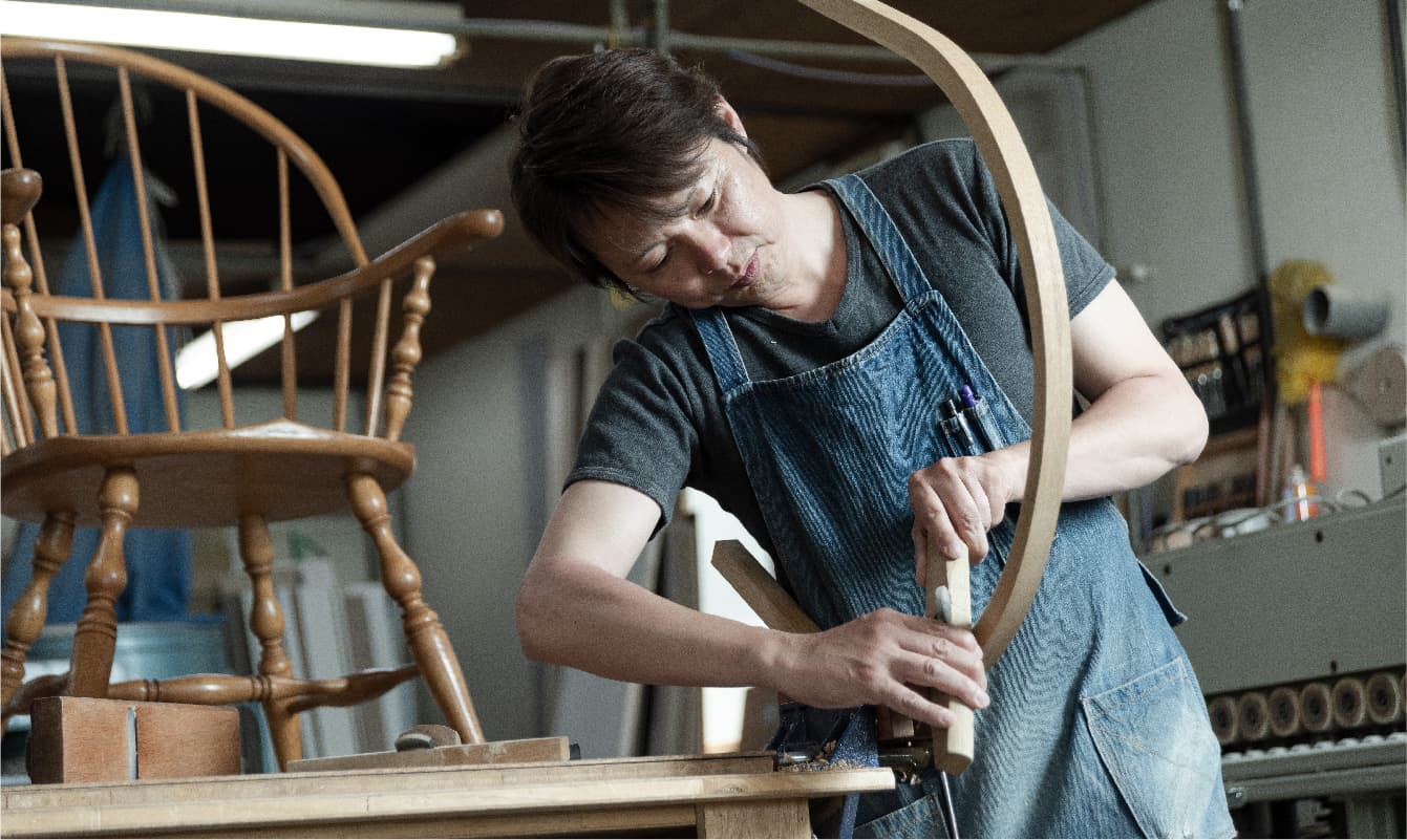無垢材にこだわり、木の素材を最大限活かした家具づくりを得意とする、江川木工。こだわりが詰まった無垢の椅子や棚が魅力。家具づくりの新しい可能性にも積極的にチャレンジしている。