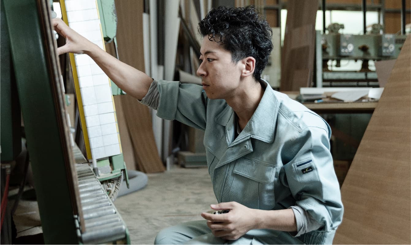 少数精鋭で、丁寧に、計画的に、様々な家具製品を量産する最強チーム、有限会社トリオ。計算され尽くした作業導線や機械レイアウト、無駄のなく圧倒的なスピードで多くの製品を生産する。